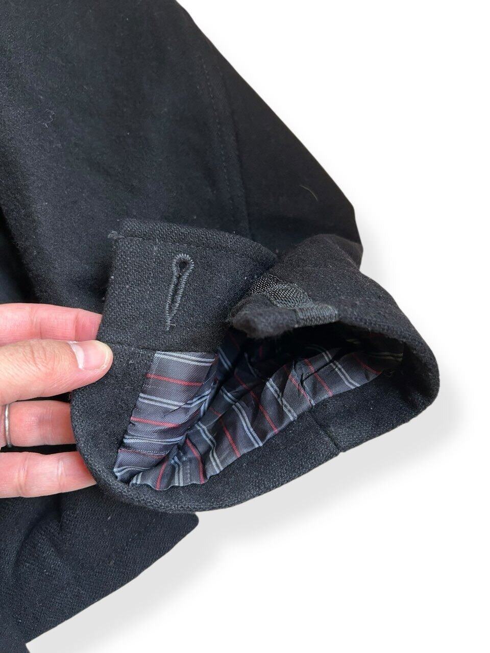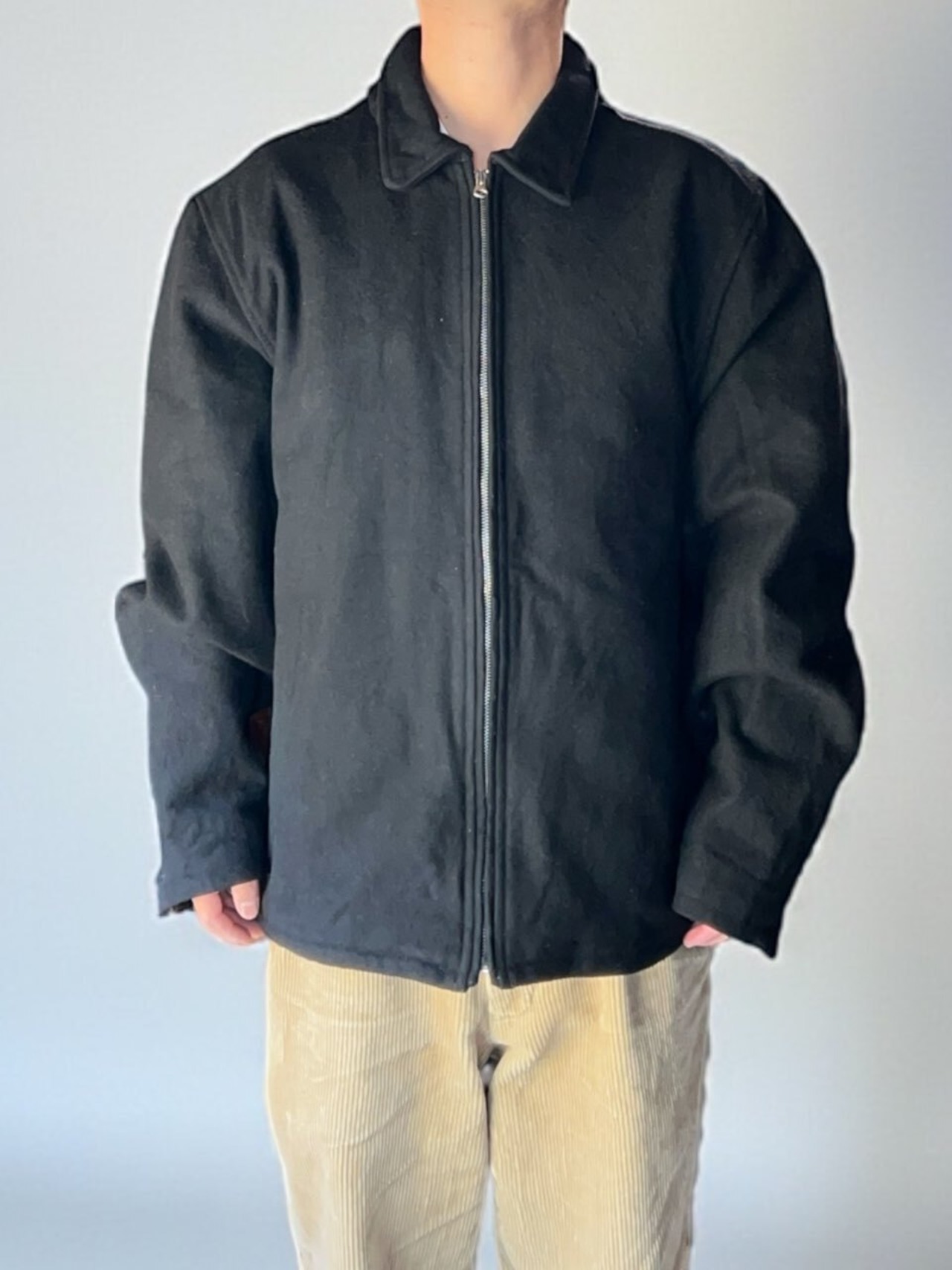 しっかり目の詰まったメルトンに、薄手の中綿入りで防寒性もある一枚です。