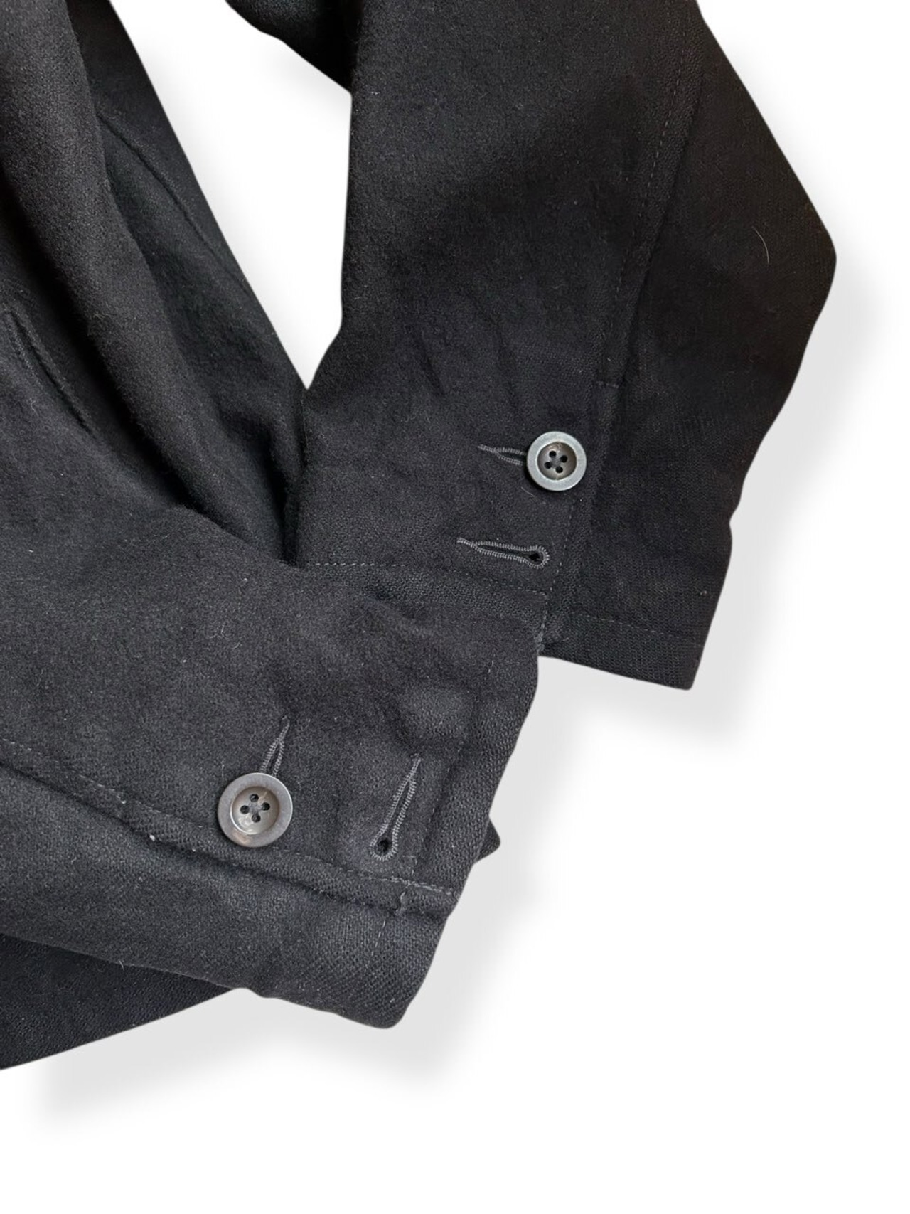 襟に若干の色褪せ、袖口のボタンが一つずつ欠損していますが、まだまだ着用いただける状態です。