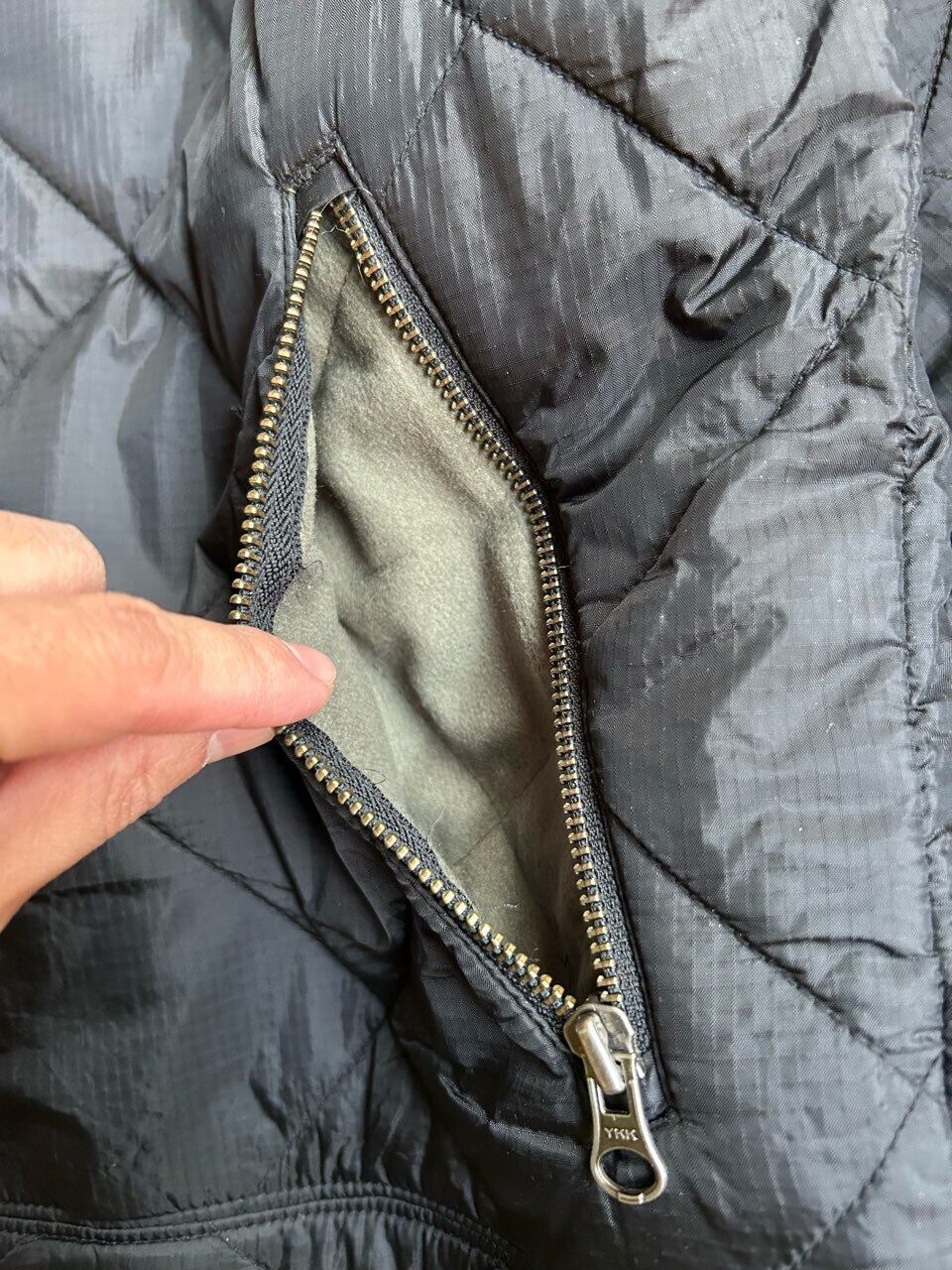 裏地は薄手のフリースで、薄手の中綿入りで防寒性もある一枚です。