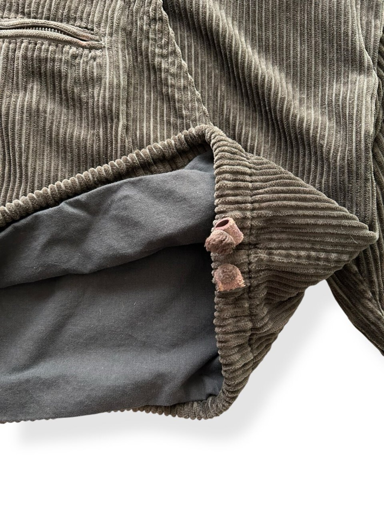 ダークブラウンの太畝コーデュロイに、裏地は薄手のコットンネルです。