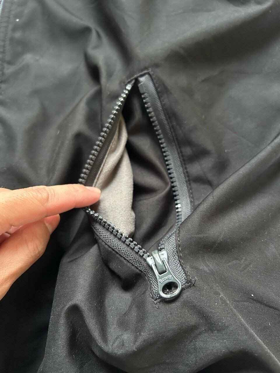 何でも無い感じですが、探すと難しい黒無地の少し光沢のあるポリに、シルエットもめちゃくちゃ綺麗でかなり便利なやつです。