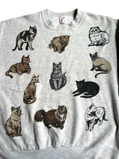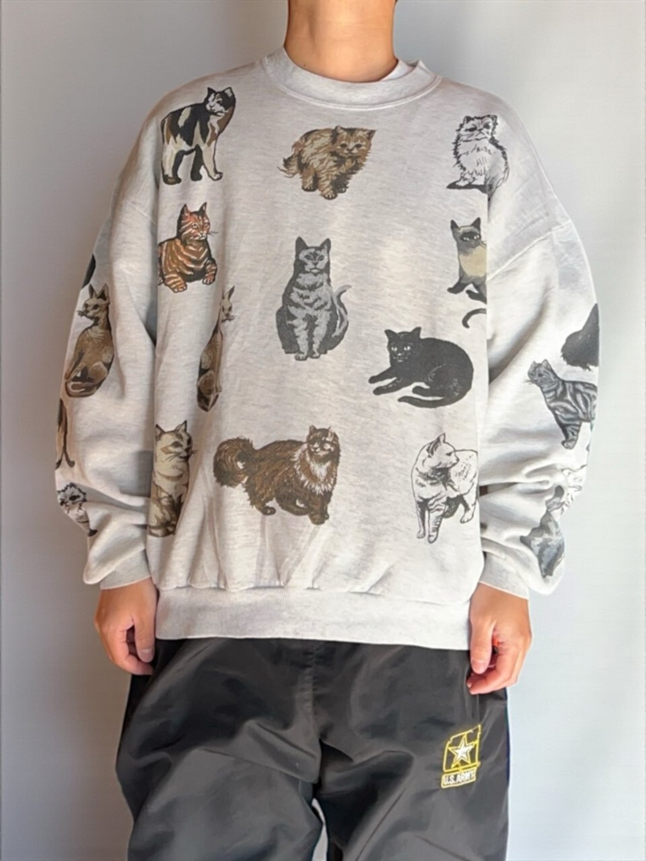 ほとんど見かけない、色んな猫がプリントされたこれ系のスウェットの最高峰かと思います。
