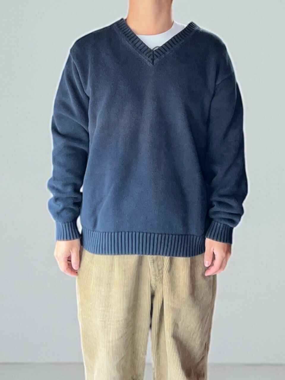 ローゲージのざっくりとした質感で、一枚でも着やすい便利なニットです。