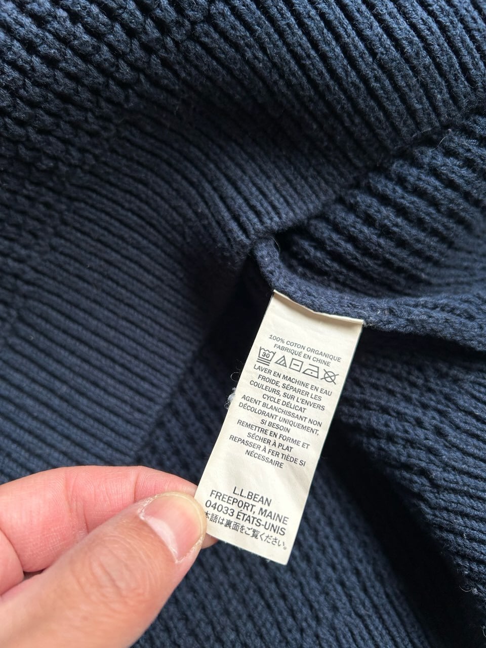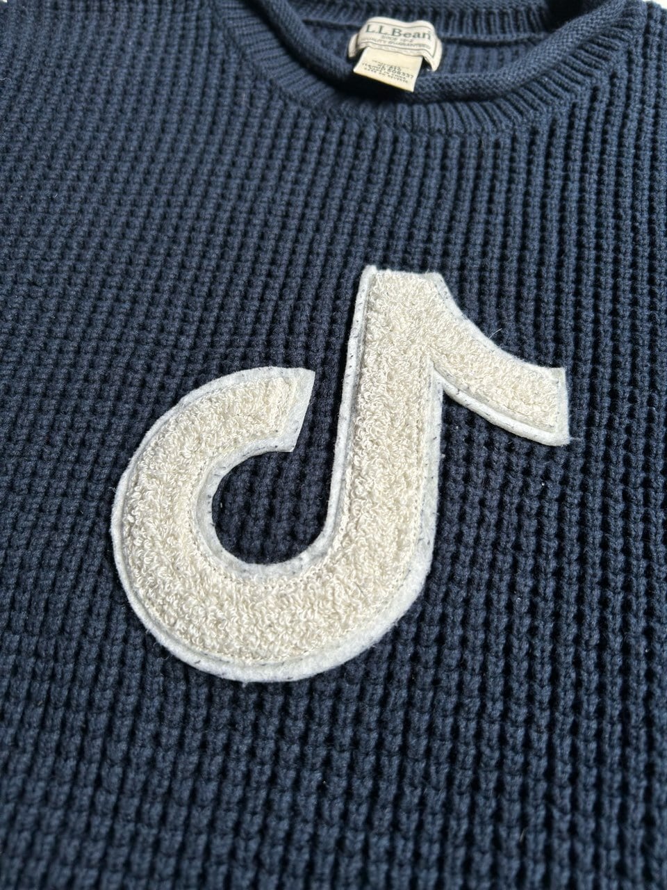 L.L.Beanのロールネックのコットンニットを使った、TikTokのおそらくプロモ用のニットです。